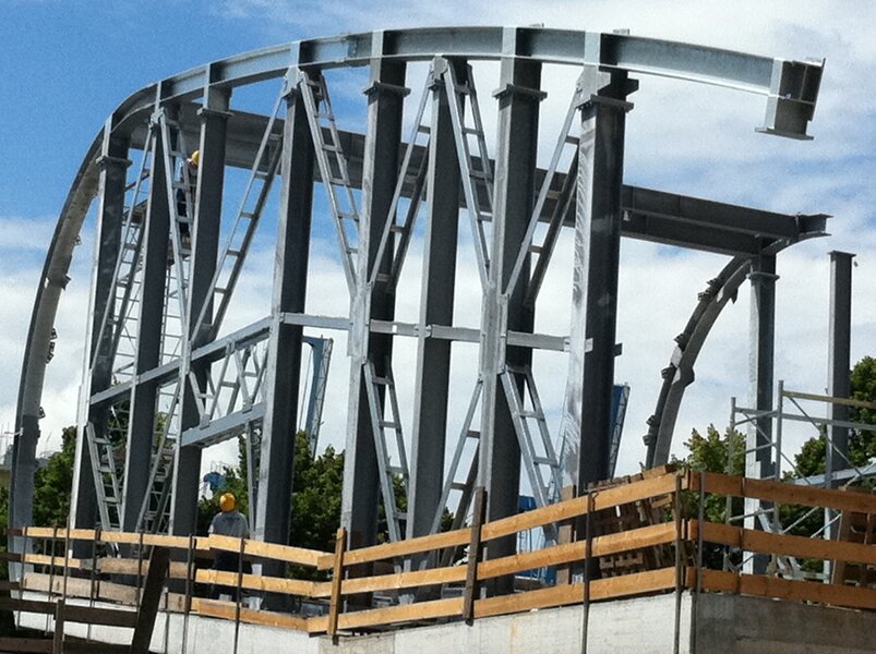 Durante la costruzione dell' opera assistiamo le imprese nel montaggio e nel successivo collaudo, fornendo in tempo reale le revisioni di cantiere, il controllo dei pesi e delle aree verniciate. Sotto alcuni esempi significativi.