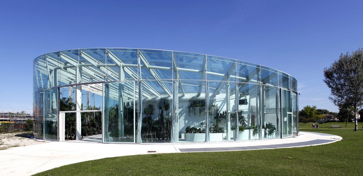 2007 | Padova (PD) | Progetto esecutivo di officina delle strutture in acciaio e dei sistemi di fissaggio della vetrazione della serra nel cuore del parco d' Europa